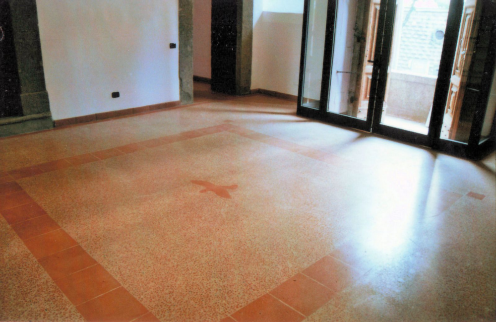 Realizzo pavimenti in Cocciopesto chiavi in mano: materiale, posa, levigatura, stuccatura e trattamento.